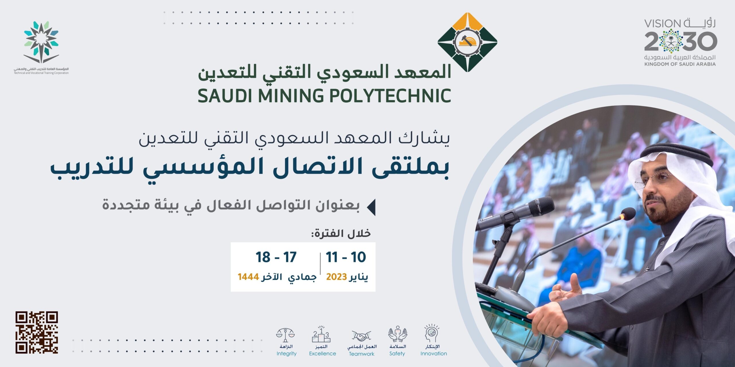 #ملتقى_الاتصال_المؤسسي_للتدريب بعنوان “التواصل الفعال في بيئة متجددة ” خلال الفترة ١٠ و ١١ يناير ٢٠٢٣ م #التدريب_التقني #معادن #كليات_التميّز #الشراكات_الاستراتيجية #قنوات_عين #جمعية_إعلاميون #رواد_الأعمال #صحيفة_الوطن