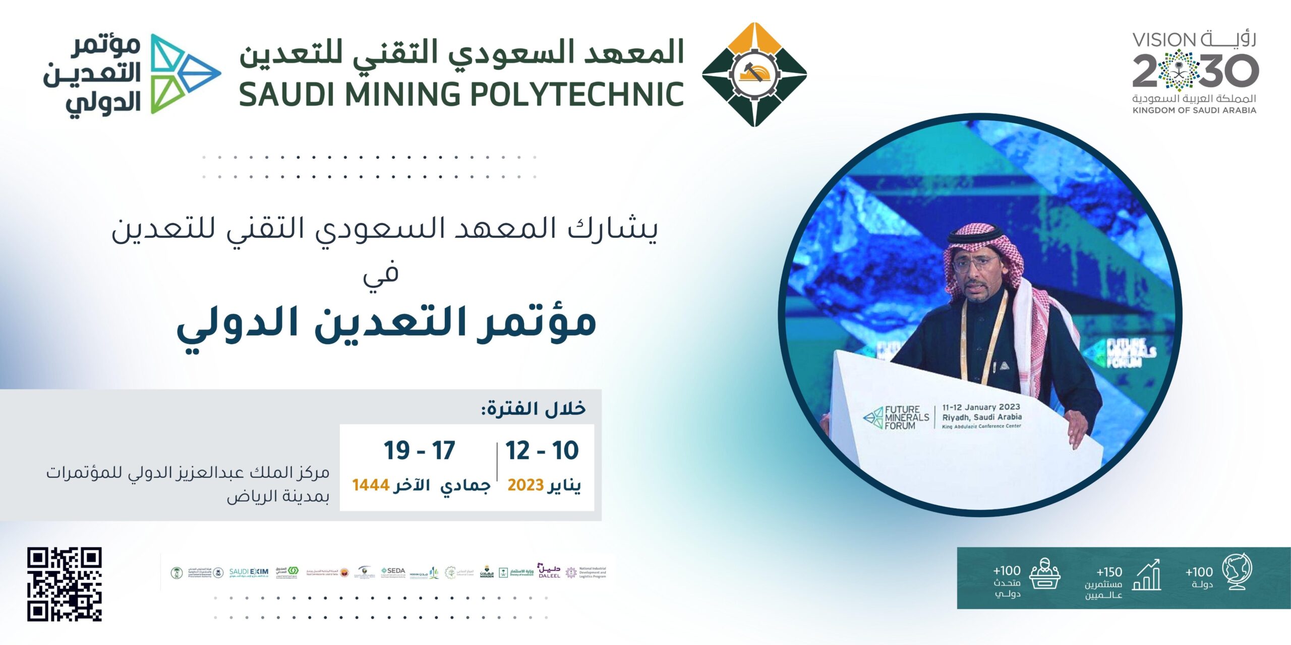يشارك المعهد السعودي التقني للتعدين في #مؤتمر_التعدين_الدولي خلال الفترة ١٠ و ١٢ يناير ٢٠٢٣ م #التدريب_التقني #معادن #كليات_التميّز #الشراكات_الاستراتيجية #FutureMineralsForum #FMF23